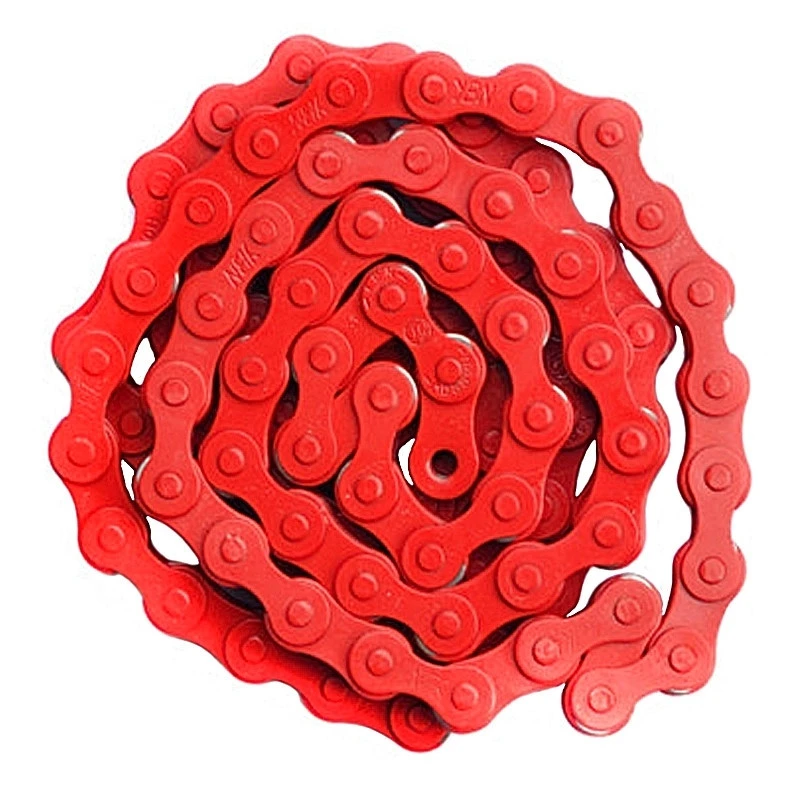 Cette chaîne de vélo rouge est compatible avec les vélos mono-vitesses type fixie ou bmx, spécialement conçu pour les cyclistes urbains souhaitant apporter de la couleur à leur vélo, cette chaîne possède 116 maillons avec une taille de 1/2 x 1/8. Elle se monte facilement à l’aide de son attache rapide fourni.