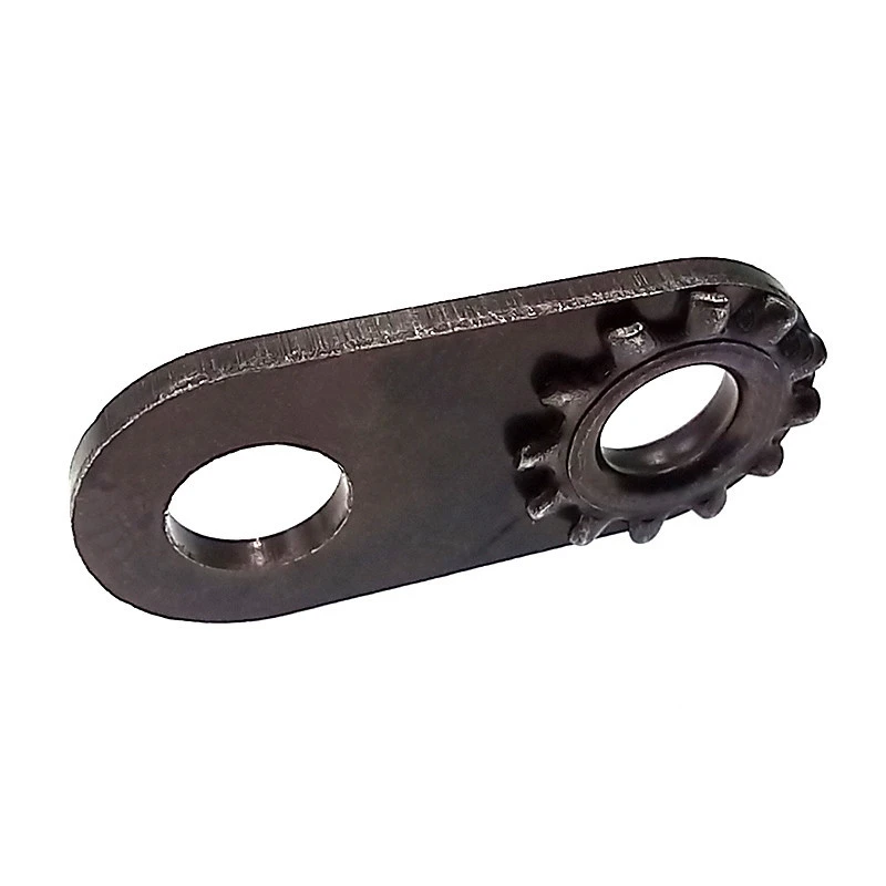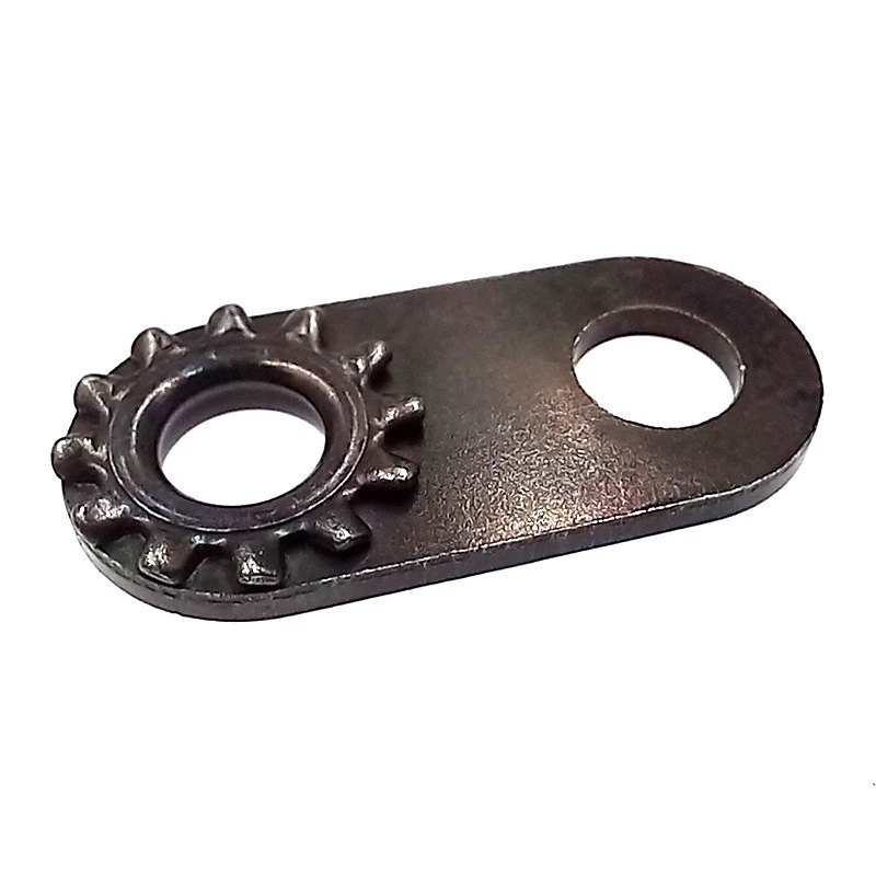 Cette patte en acier noir permet de rallonger la fixation présente sur les dynamo afin d’avoir un recul nécessaire pour son montage sur le hauban du vélo.